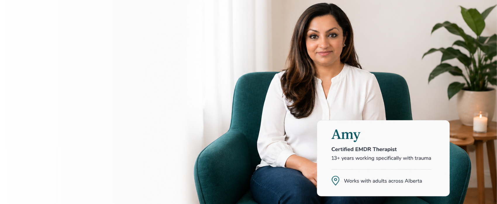 Amy provides treatment for individuals across Alberta carrying experiences that haven’t eased, whether that’s something that happened recently, something that’s been building for years, or something you’ve never quite had the words for.